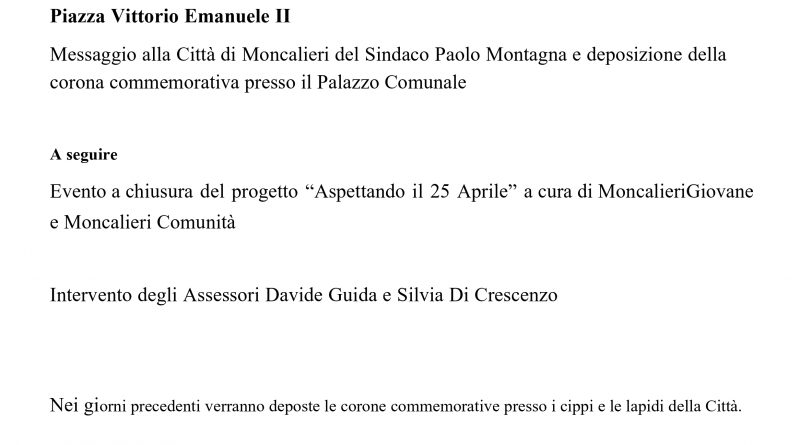 25 APRILE A MONCALIERI: 78° Anniversario della Liberazione