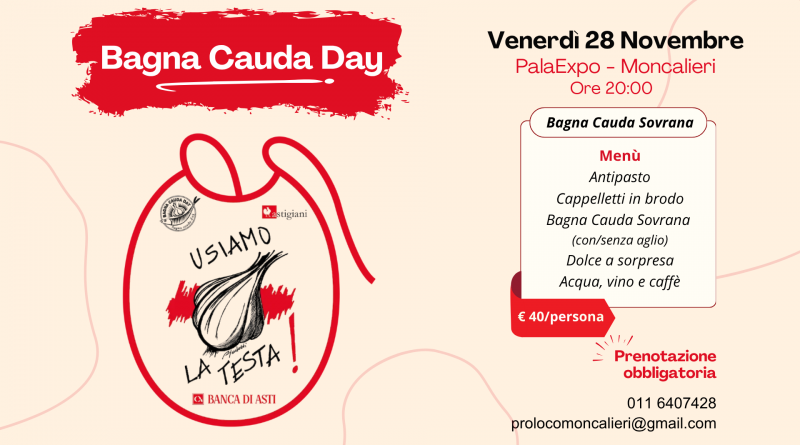 Venerdì 28 novembre alle ore 20, al PalaExpo, uno dei simboli gastronomici del Piemonte sarà protagonista del Bagna Cauda Day, un evento speciale che celebra convivialità, tradizione e sapori genuini. Un’occasione da non perdere per chi vuole gustare – o riscoprire – la vera bagna cauda, proposta in due varianti: con aglio oppure senza.
