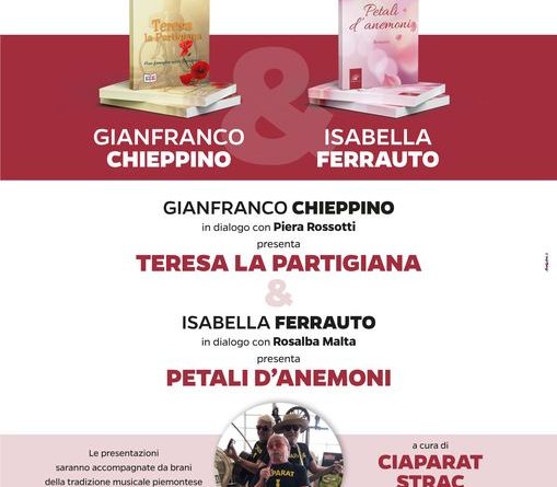 Gianfranco Chieppino in dialogo con Piera Rossotti presenterà “Teresa la Partigiana” mentre Isabella Ferrautoin dialogo con Rosalba Malta presenterà “Petali d’anemoni”