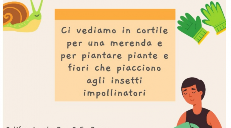 Dalle ore 16.00 faremo merenda insieme ai più piccoli con “Piantala” e abbelliremo il giardino del cortile piantando fiori e piante che piacciono agli insetti impollinatori, sarà un’occasione per mettere in pratica il nostro “pollice verde, divertirci ma anche pensare a come dare il nostro contributo all’ecosistema.
