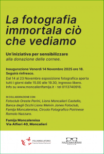 La mostra sarà visitabile dal 14 al 23 Novembre, tutti i giorni dalle 15.00 alle 19.30 presso la Famija Moncalereisa – Via Alfieri 40, Moncalieri.